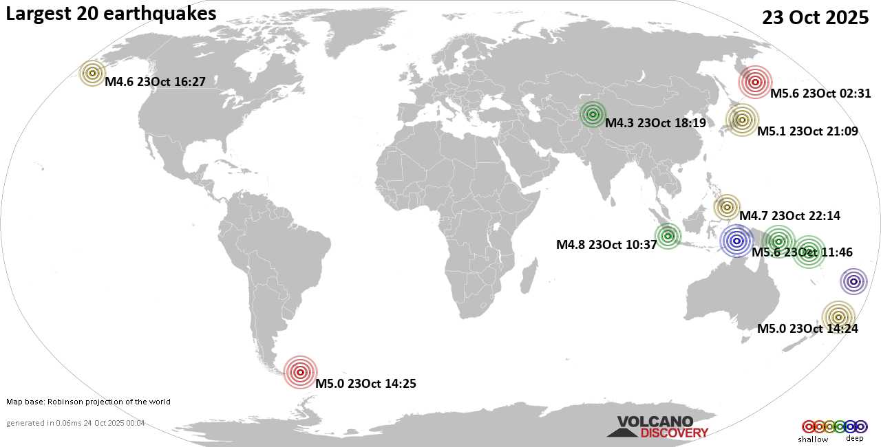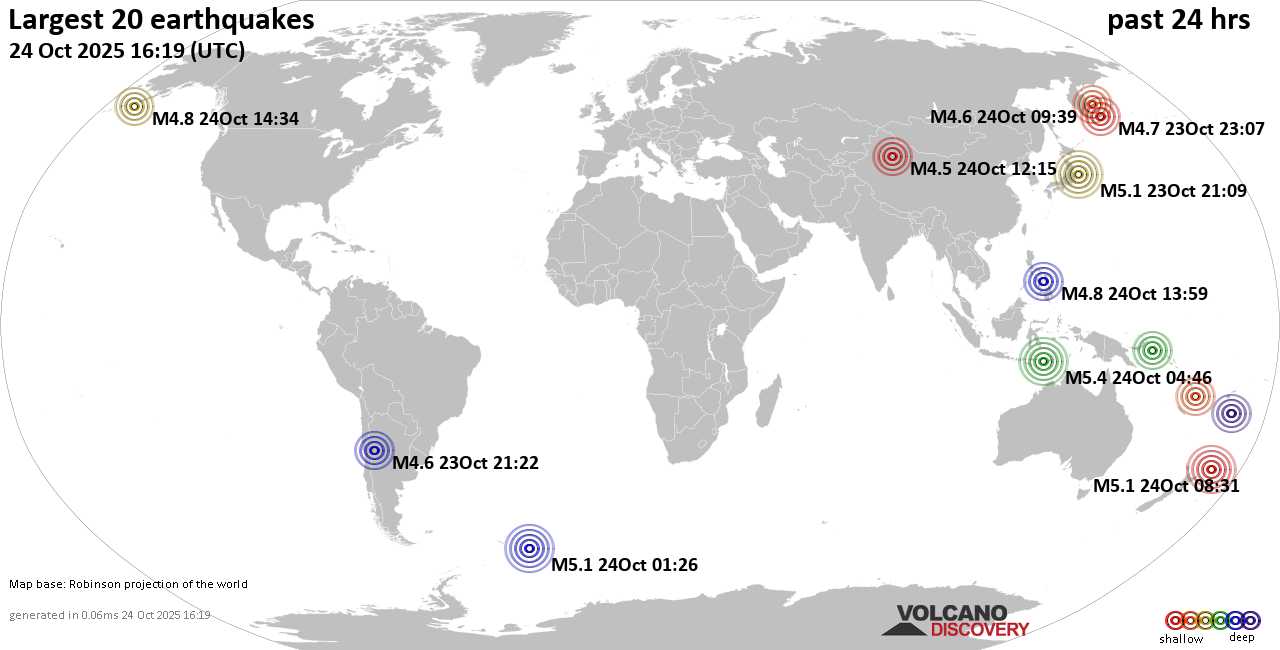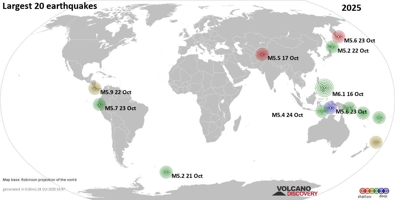 По данным Геологической службы Соединенных Штатов (USGS), ежегодно в мире происходит в среднем около 500000 обнаруживаемых землетрясений, или около 1400 землетрясений в день.
