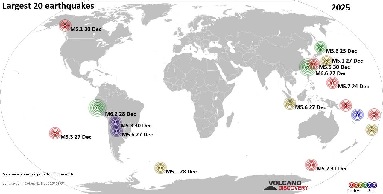 Землетрясения сегодня на карте: сильные землетрясения, 31 декабря 2025 года